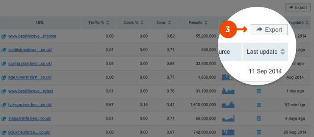 - You can export this report in XSL or CSV format by clicking the Export button (3) and sorting data directly in your spreadsheet.